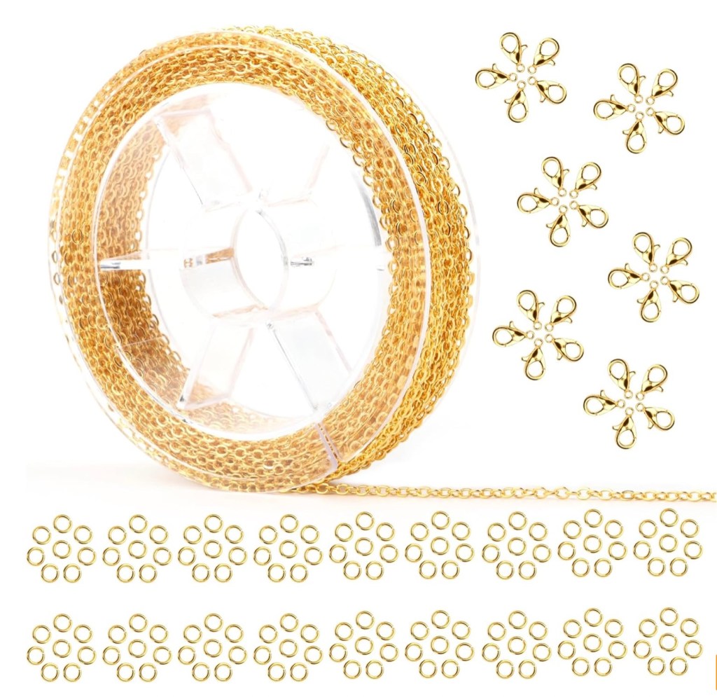 - 2,60m de corrente x2 (é fio de fazer colares), uma para cada lado = 5,20m