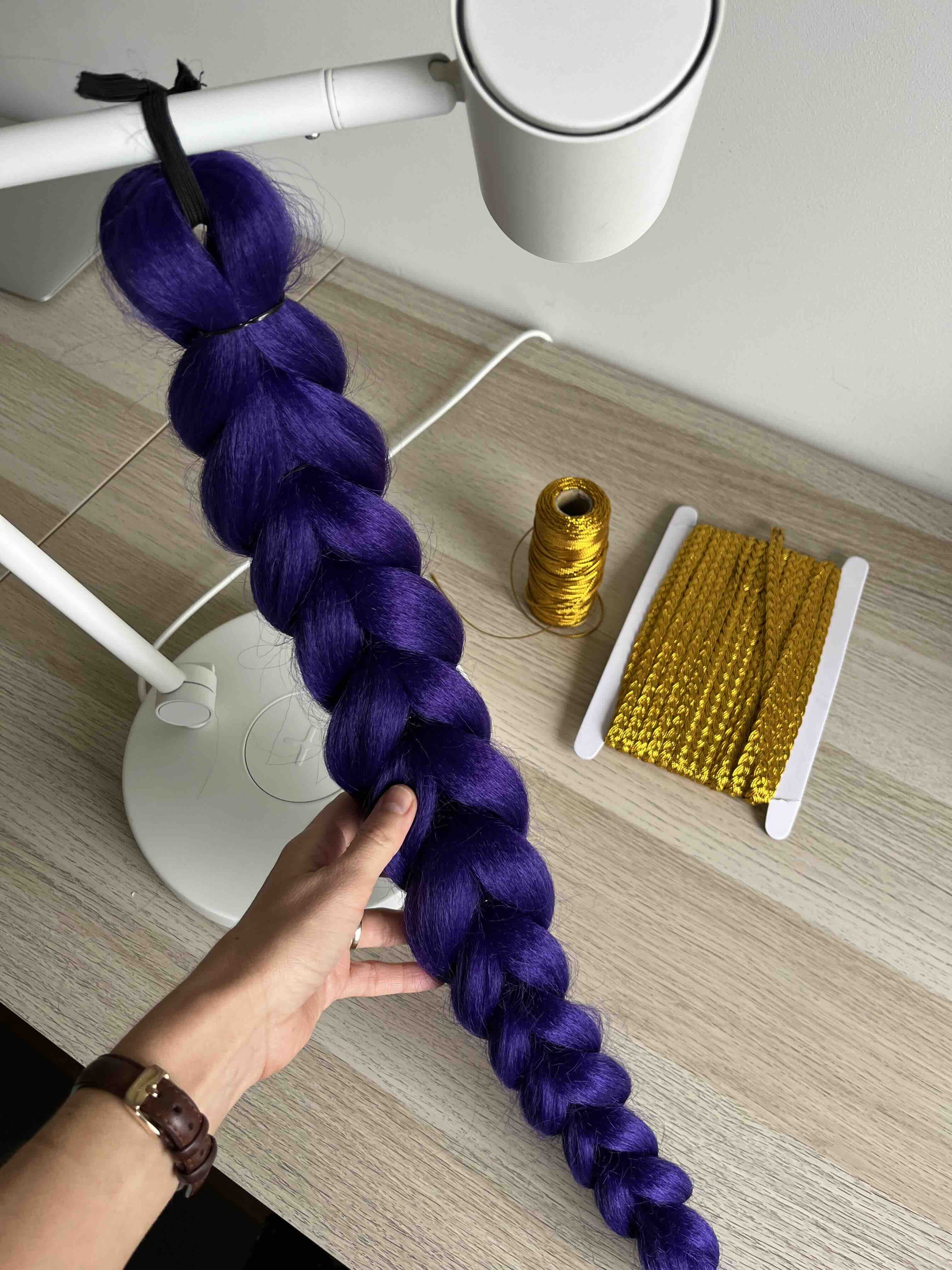 - Os fios roxos não são tão lisos e sedosos como parece na fotografia. Ao dividir ao meio para fazer cada passo, alguns vinham atrás. Mas funcionou.