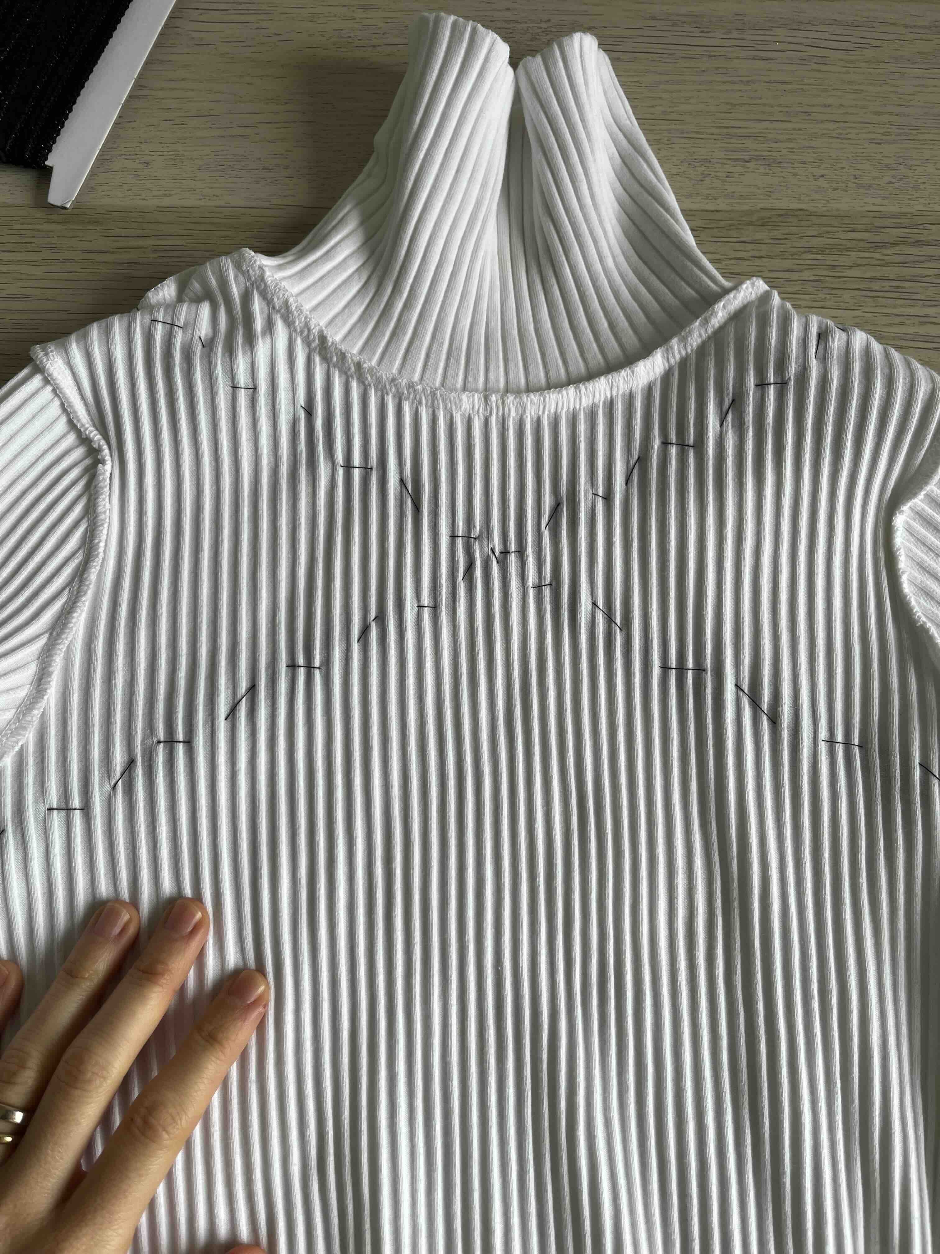 - Com a meia posta, marquei 14 pontos com alfinetes (7 lado a lado)