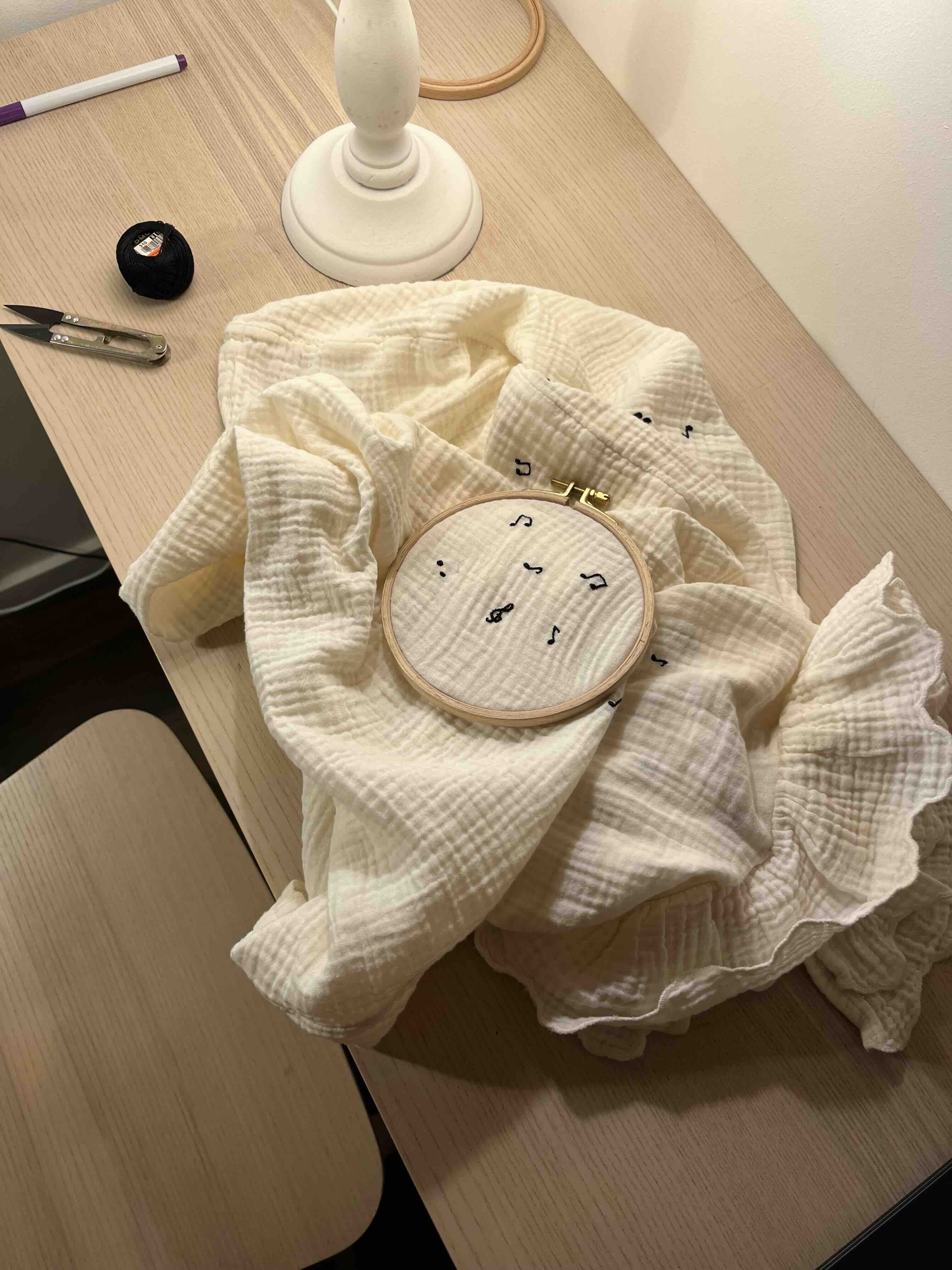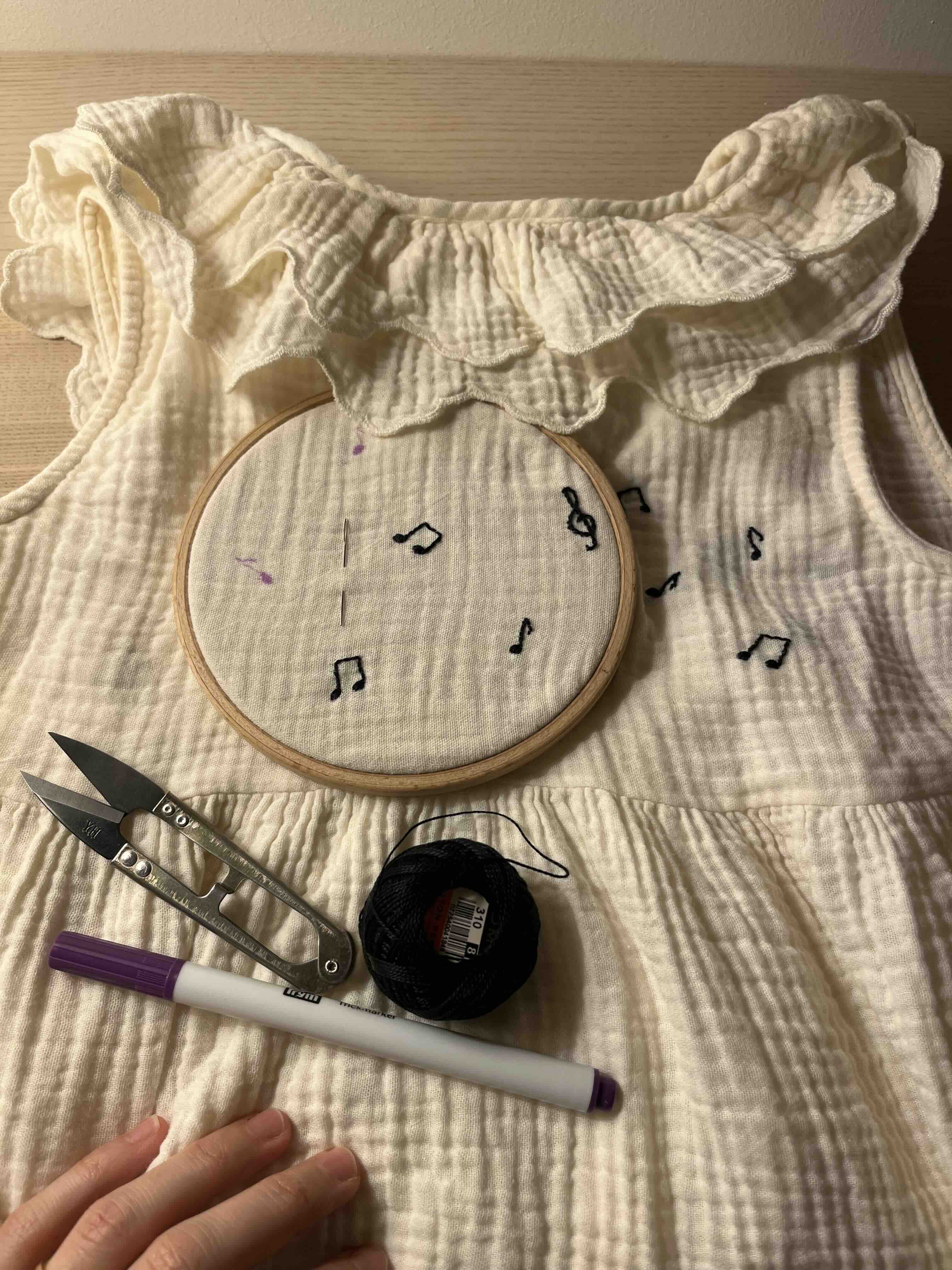 - Desenhei as notas no tecido com caneta que desaparece